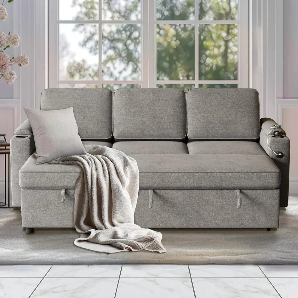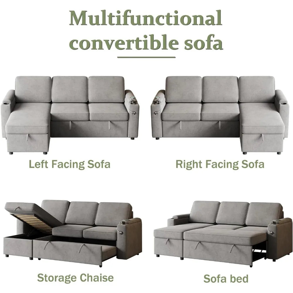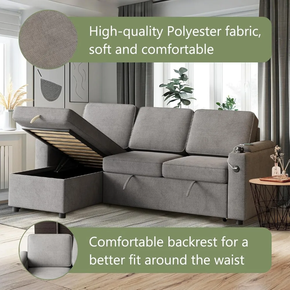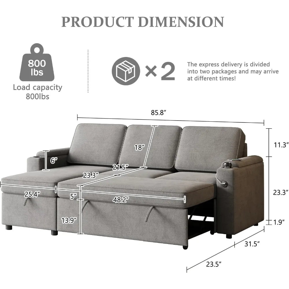 85.8"L Shaped Sleeper Sofa Couch,Polyester Pull Out Couch, Sleeper Sectional Sofa with Storage Armrests,Reversible Sectional Sof