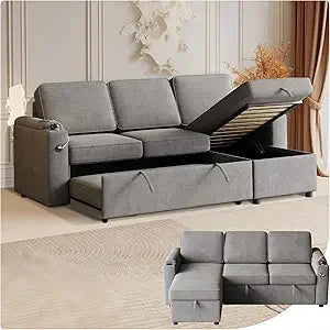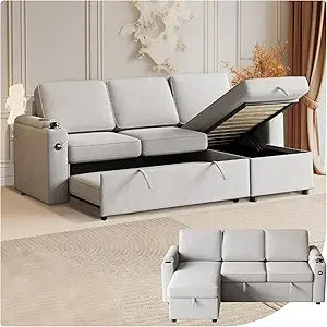 - Hidden Storage:This convertible sleeper sofa bed with a large chaise storage space can be used to store different things, and the lounger can face left or right to fit in any room layout
