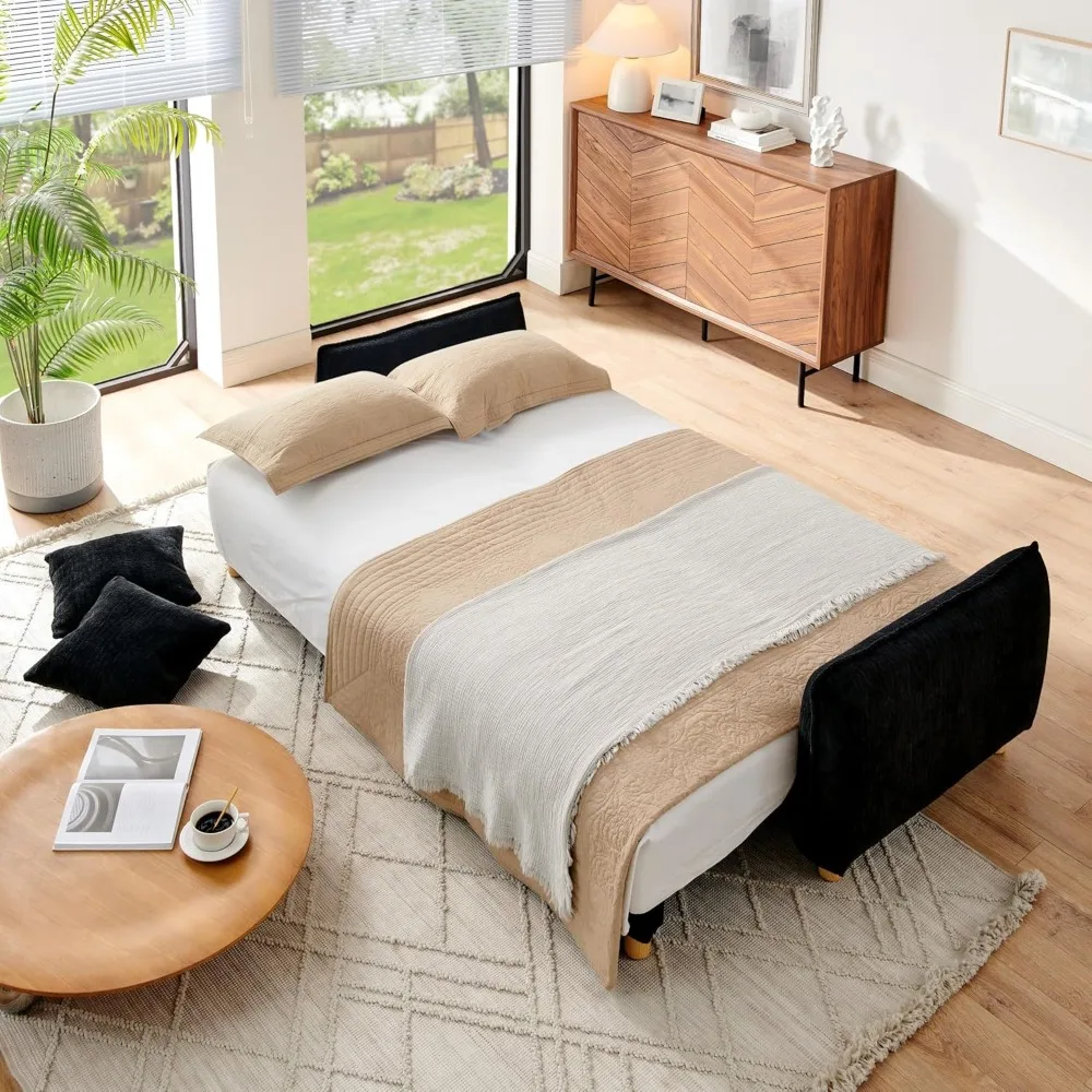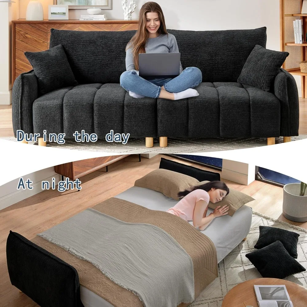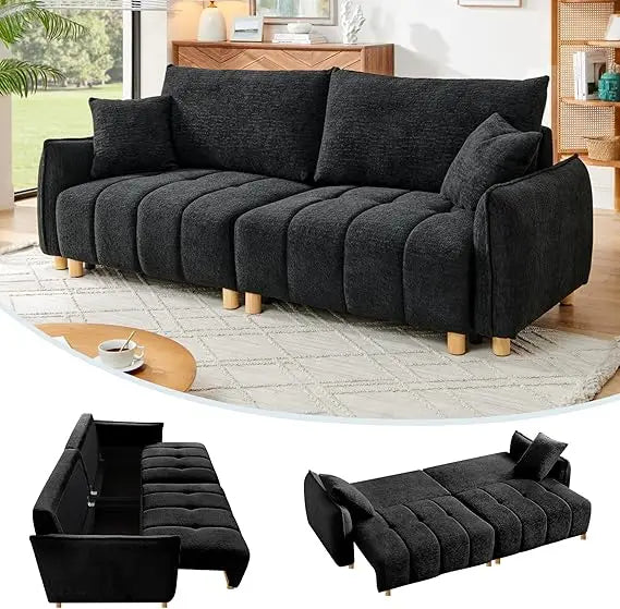 Chenille Fabric Sleeper Sofa Bed with Storage, Convertible Couch Loveseat for Living Rooms, Apartments, and Compact Spaces in Bl