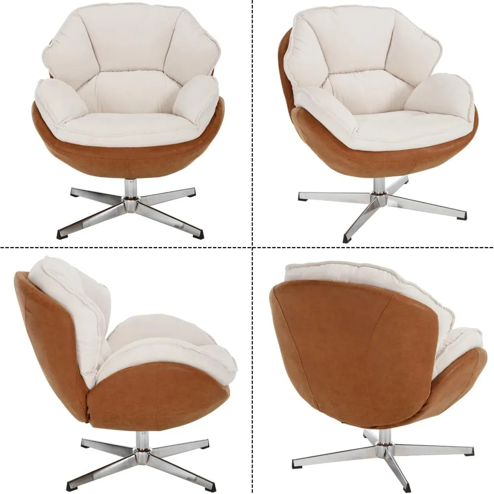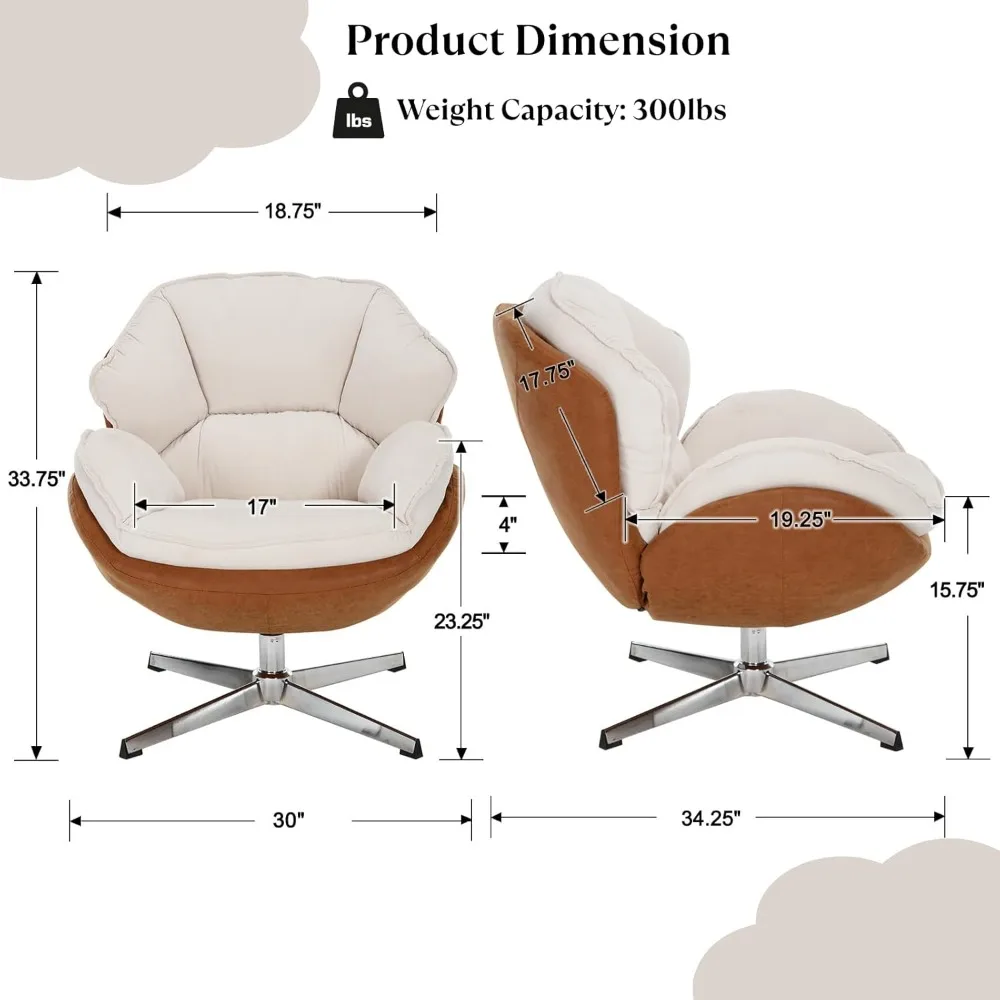 Here's a rewritten product description based on the provided information: --- **Product Details:** - **Unique Design:** This accent chair features an eye-catching L-shaped slightly concave upholstered seat. Its ergonomic design allows for neck, back, and waist relaxation when you sit or recline. - **Fabric:** Crafted with high-density sponge and covered in Chenille/Velvet fabric, this swivel lounger chair is wear-resistant, sink-friendly, and breathable. It's suitable for most home decors and easy to maintain for daily use. - **360° Swivel:** Equipped with a swiveling metal base, this leisure armchair has anti-slip foot studs on its four legs, enhancing stability during swiveling. It can serve as a cradle for napping with a small blanket, making it perfect for enjoying your downtime. - **Wide Application:** This sofa armchair offers an extra seating option for your home. It's suitable for both living rooms and bedrooms. After a long day of work or study, the adequate width and depth of the seat provide good support and wrap around your body for full relaxation. You can use it to watch TV, read books, or chat with family and friends. - **Simple Assembly:** The accent chair arrives with all components, assembly stools, and instructions, making it easier for you to assemble. --- This description retains the original meaning while avoiding the use of brand terms and special symbols.