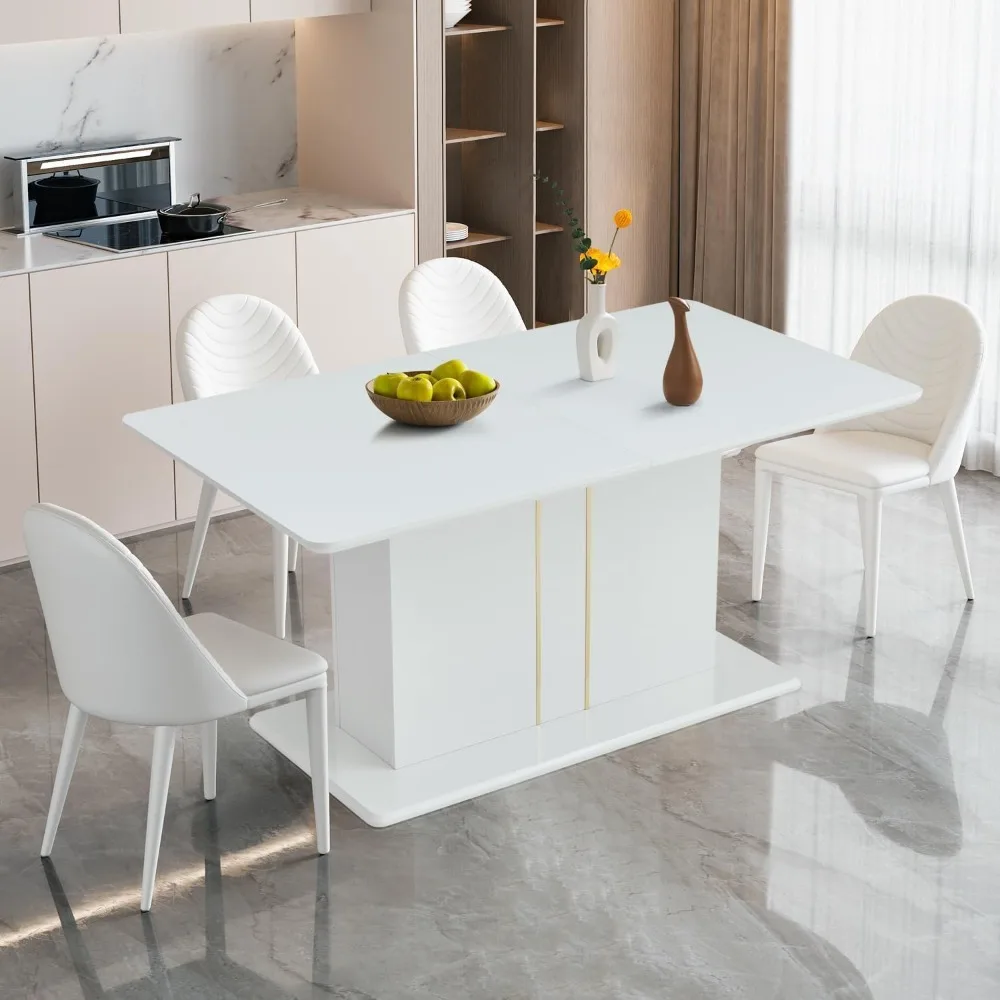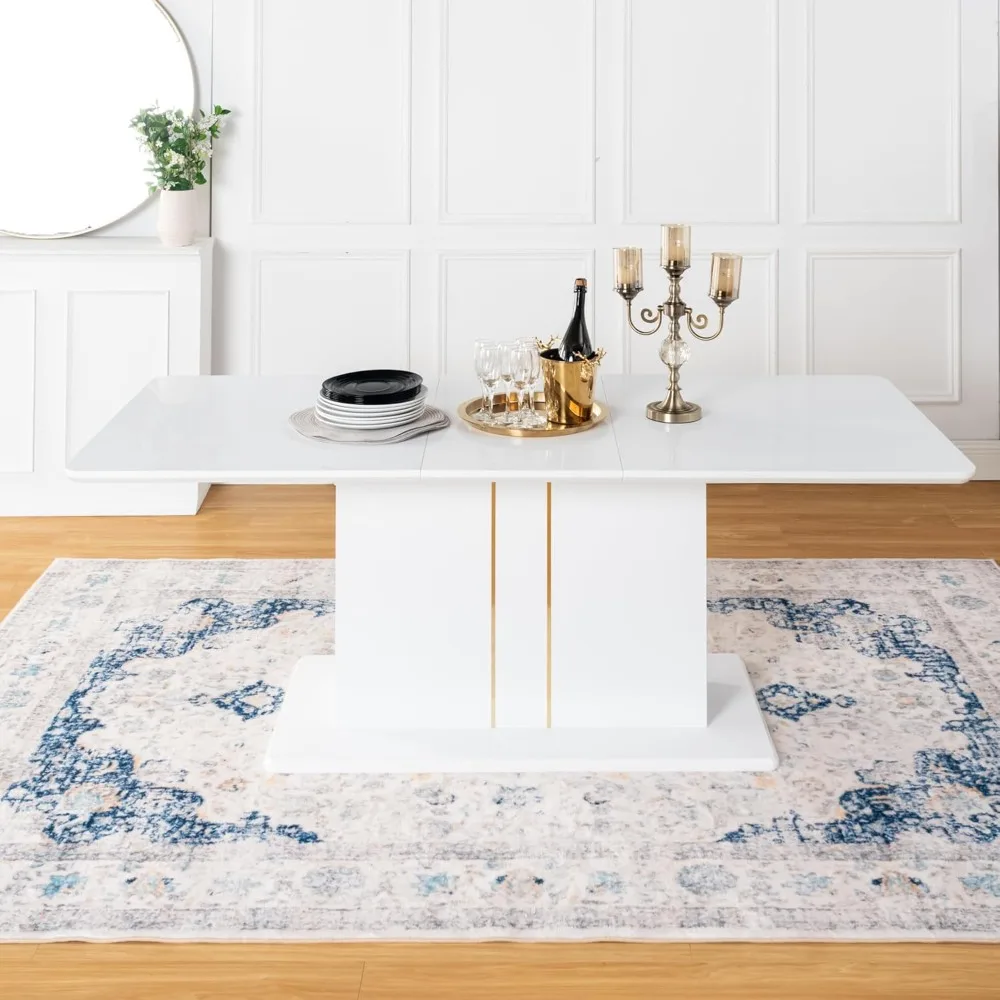 This dining table is a contemporary and elegant addition to your home, suitable for both everyday meals and special occasions. Its modern design makes it a perfect focal point in your dining room, blending seamlessly with your decor and enhancing your dining experience. Crafted from high-quality materials, this wooden table is built to last, offering both durability and sturdiness. It's designed to handle the weight of various dishes and drinks, ensuring it can withstand the demands of daily use. The extendable design allows this table to comfortably seat up to eight people, making it perfect for family gatherings or hosting friends. It provides ample space, ensuring that even with a full table, everyone can enjoy a comfortable dining experience. This high-gloss white dining table is backed by our commitment to customer satisfaction. If you receive a damaged table during transportation, please contact us immediately, and we will resolve the issue within 24 hours. Our customer service team is dedicated to addressing any concerns you may have regarding product quality, packaging, installation, or any other queries. We promise to respond to your questions within 24 hours and provide you with thoughtful service and comprehensive solutions. Don't hesitate to reach out to us directly for any assistance you may need.