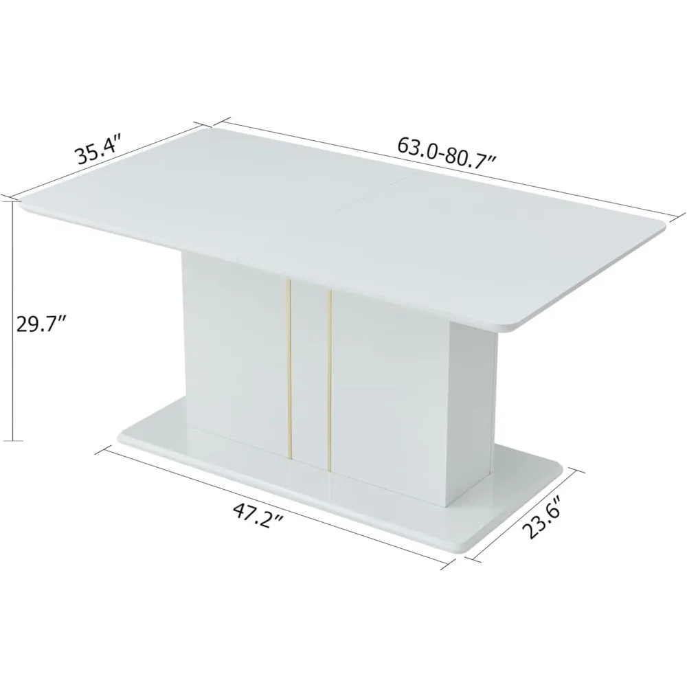 Elegant Expandable Glossy Wooden Dining Table, 63-80.7, Suitable for Kitchen, Restaurant, Home Office, White