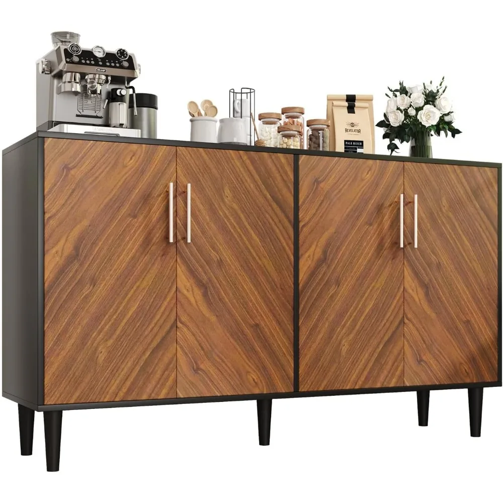 Ever Winner 58 Buffet Cabinet with Storage and Adjustable Shelves, Modern Coffee Bar with 4 Doors for Living Room