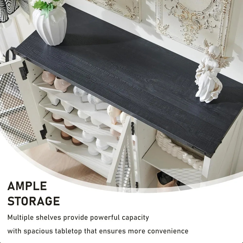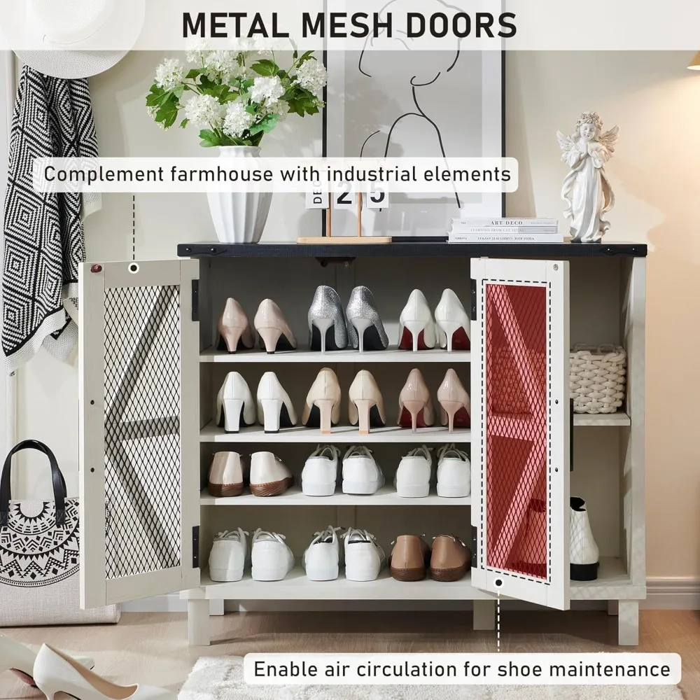 Farmhouse Style Shoe Storage Cabinet, 38 Wide with Mesh Doors and Adjustable Shelves, Rustic Wooden Shoe Organizer