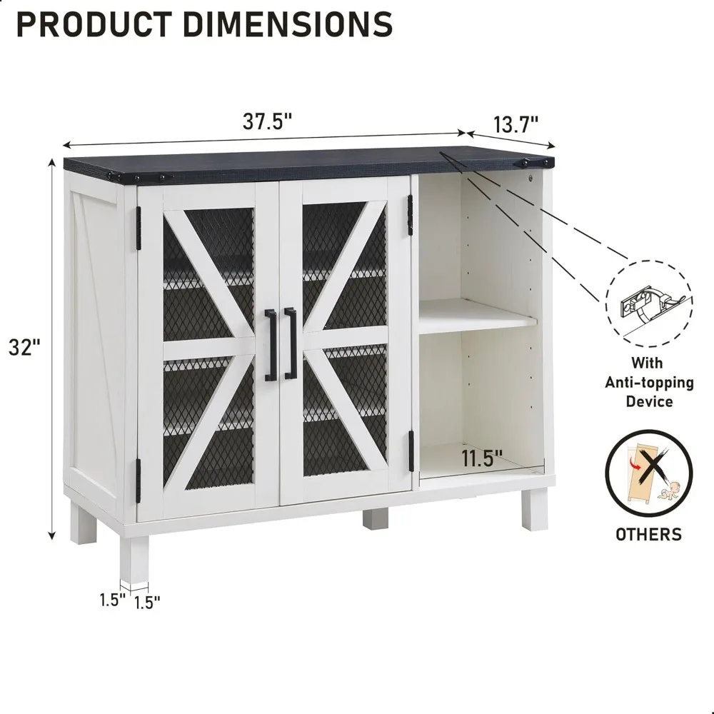 This shoe cabinet offers a spacious and modern storage solution for your footwear, perfect for living rooms and entryways. With dimensions of 38 inches wide, 14 inches deep, and 32 inches high, it provides ample shelving space to accommodate your shoe collection without taking up too much room. The cabinet is crafted from engineered wood with a wood grain veneer finish, featuring a rustic oak look and a classic farmhouse style. The double barn doors conceal three adjustable and removable shelves, capable of storing over 15 pairs of shoes, depending on their size. Additional open cubby spaces and a large tabletop offer extra room for daily essentials. Designed with thoughtful details, the shoe cabinet includes mesh doors and circular cut-outs for air circulation, ensuring proper shoe maintenance. A support leg at the bottom prevents wobbling and helps keep dust at bay. Assembly is made easy with an included manual, all necessary hardware, and an anti-topple kit. The cabinet also boasts a waterproof surface, making it simple to clean and maintain.