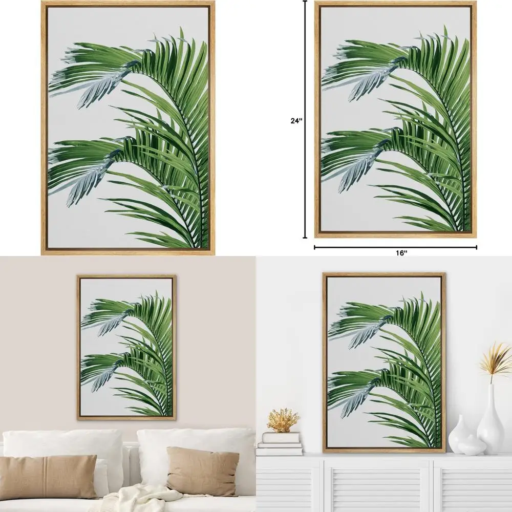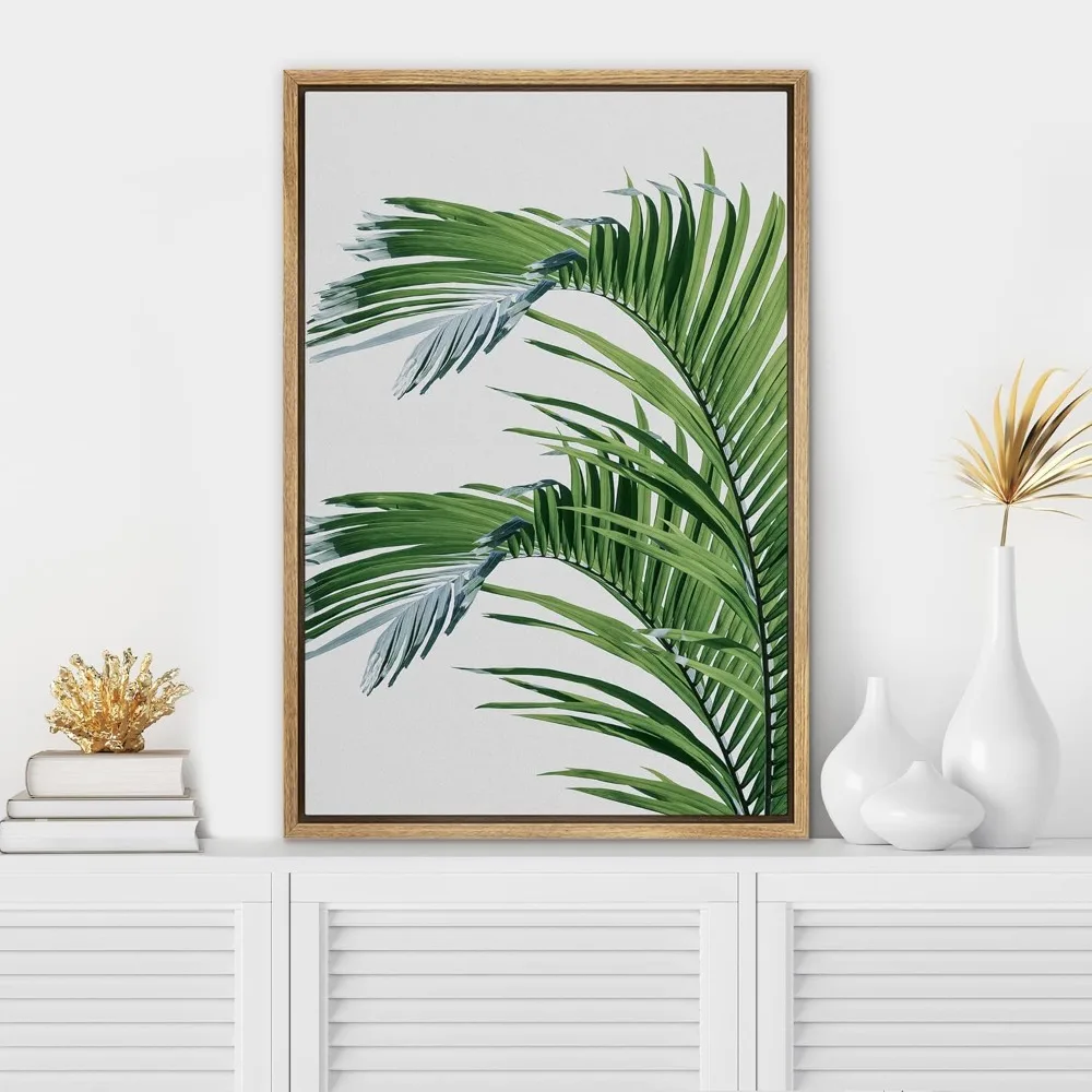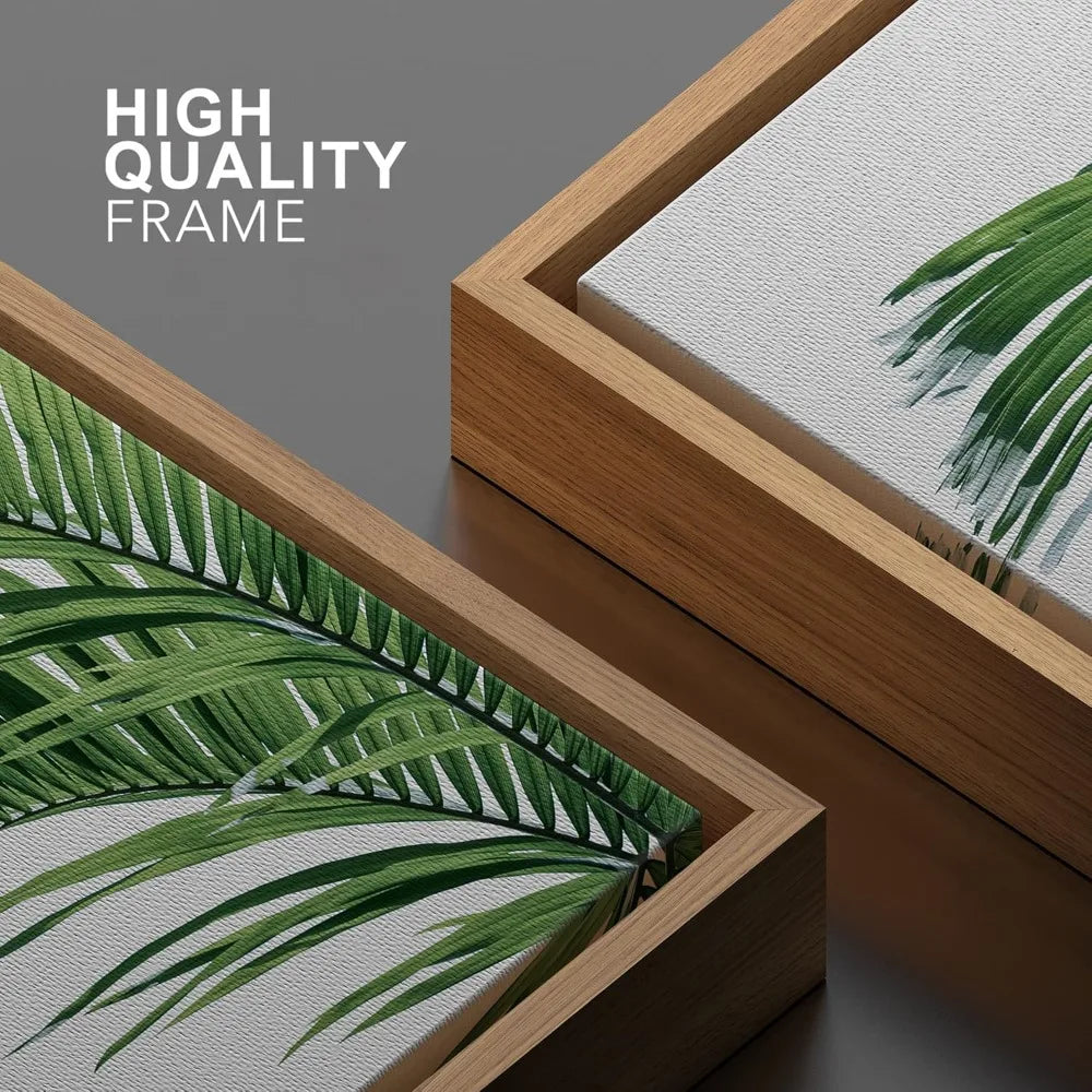 Framed Canvas Wall Art: Lush Green Jungle Palms - Nature Themed Modern Decorative Minimalist Art