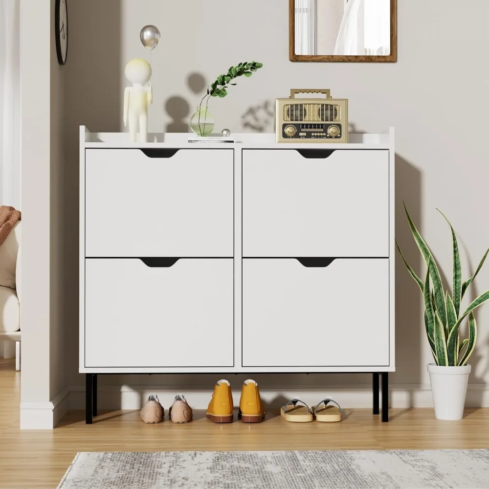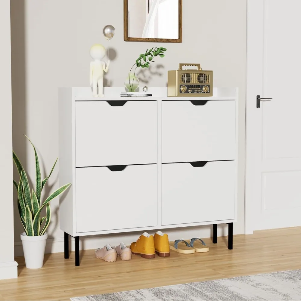 Freestanding 4-Drawer Shoe Storage Cabinet with Adjustable Shelves and Metal Legs