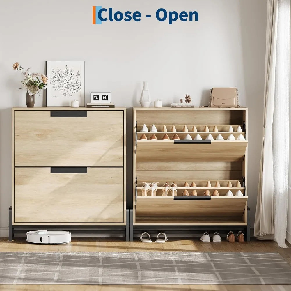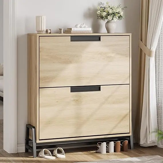 Freestanding Shoe Storage Cabinet with 2 Adjustable Drawers and Metal Legs