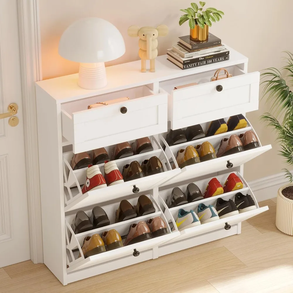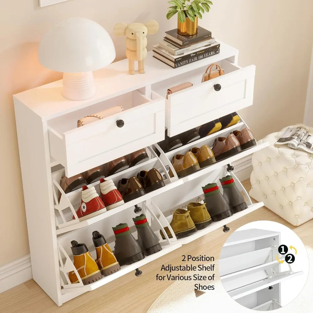 Freestanding Shoe Storage Cabinet with 4 Flip Drawers and 2 Adjustable Shelves for Organizing Shoes