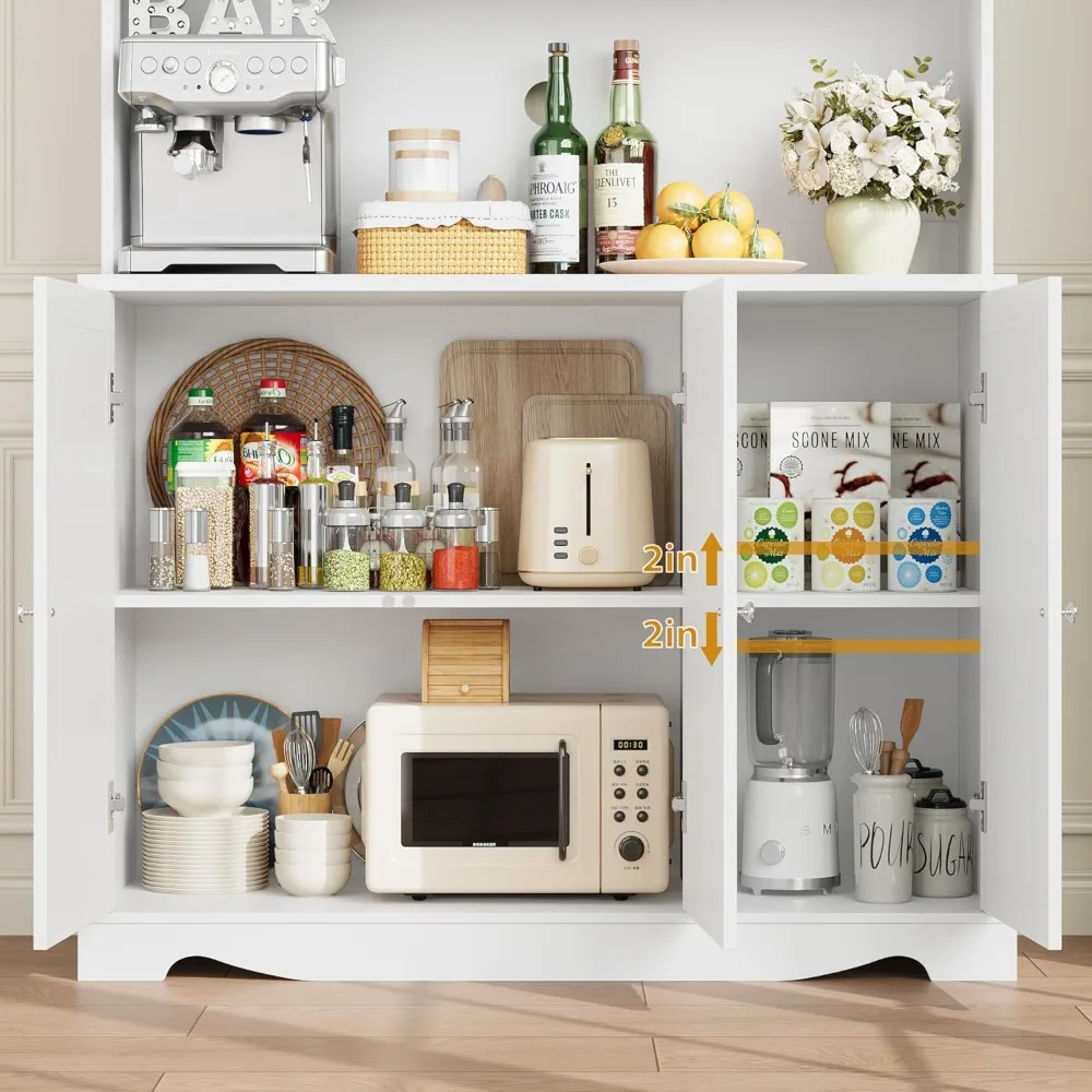 Kitchen Pantry Storage Cabinet with Hutch, Tall Cabinet for Food Storage and Microwave Stand, Farmhouse Style Kitchen Hutch