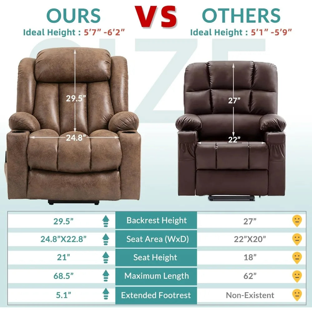 Large Comfort Electric Recliner Chair with Extended Footrest for Big and Tall Individuals, Plush Wide Recliner with Massage Feat