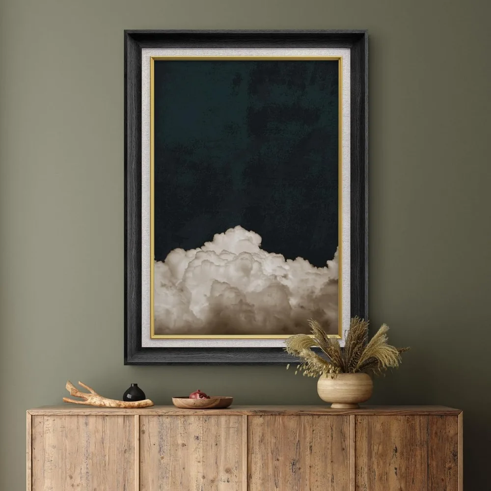 Luxury Framed Art: Soft Pastel Watercolor, Dual-Toned Clouds Sky, Nature Landscape, Minimalist Rustic Photography