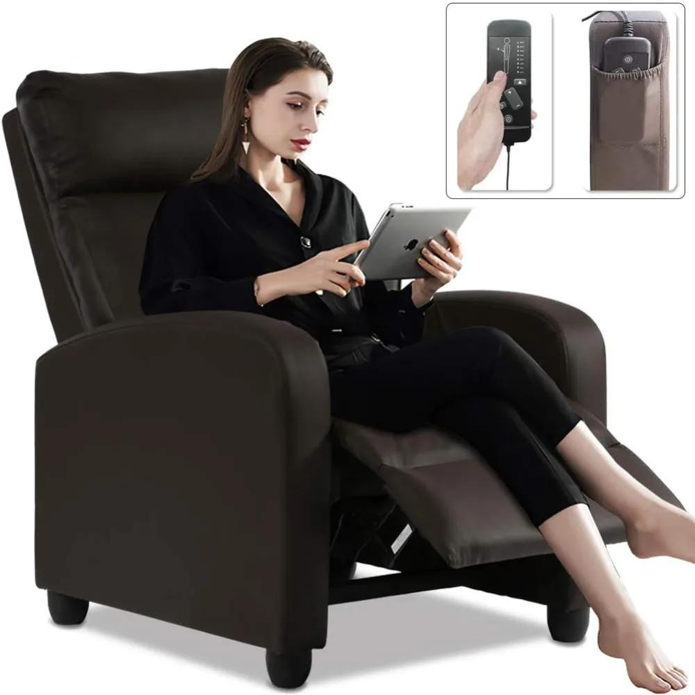 Modern PU Leather Recliner Sofa with Massage and Reading Chair Features for Home Theater and Living Room Comfort