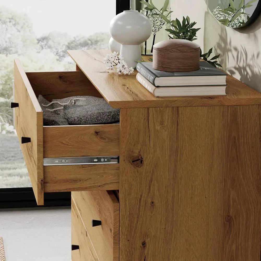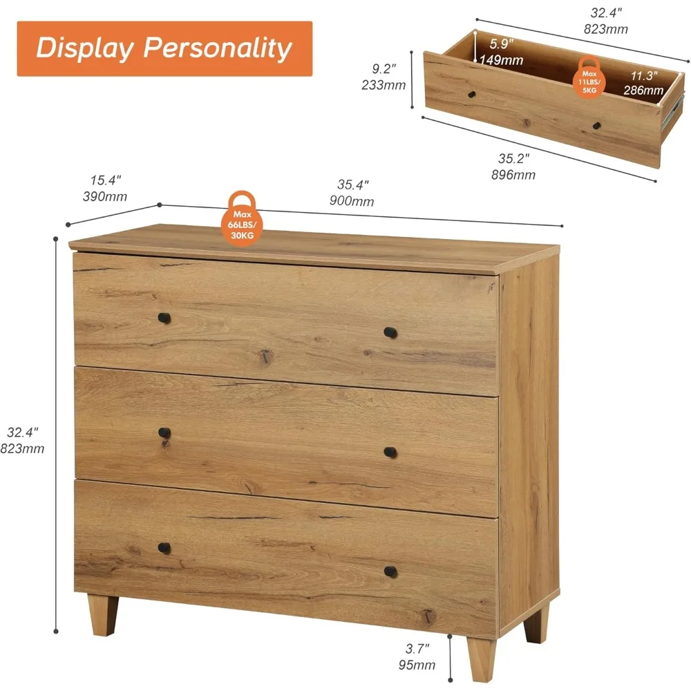 This item features a pair of contemporary nightstands, showcasing a combination of oak brown wood finish and black handles, which infuse a sense of distinctiveness and elegance into your bedroom, living room, or any other space in your home. Each nightstand is equipped with three spacious sliding drawers, providing ample storage for books, glasses, clothing, and other personal items, while maintaining an organized and clutter-free environment. The dimensions of each drawer are 32.4 inches wide, 11.3 inches deep, and 5.9 inches high, with a maximum pull-out distance of 7.48 inches for safety. These wooden nightstands serve multiple purposes, functioning as both bedside tables and dressers for organizing clothes in the bedroom, or as end tables/sofa side tables in the living room, offering substantial concealed storage. Constructed from durable manufactured wood and solid wood legs, these nightstands are stable and can support up to 66 lbs on the top surface, ensuring long-lasting use. They also include anti-tipping hardware for added safety. Assembly is required but straightforward, thanks to clear instructions, numbered parts, and pre-assembled drawer sliders. An assembly video is available for guidance, and it is recommended to have two adults assist in the process. These nightstands are a practical and stylish addition to your home, providing both functionality and aesthetic appeal.