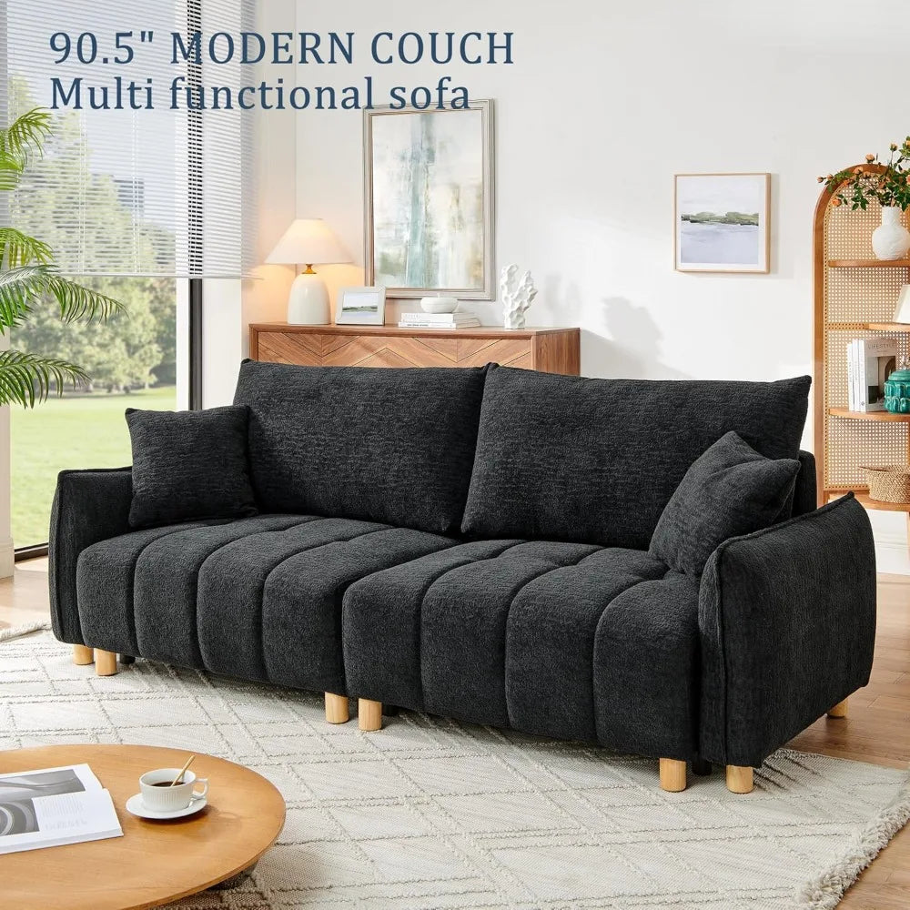 Chenille Fabric Sleeper Sofa Bed with Storage, Convertible Couch Loveseat for Living Rooms, Apartments, and Compact Spaces in Bl
