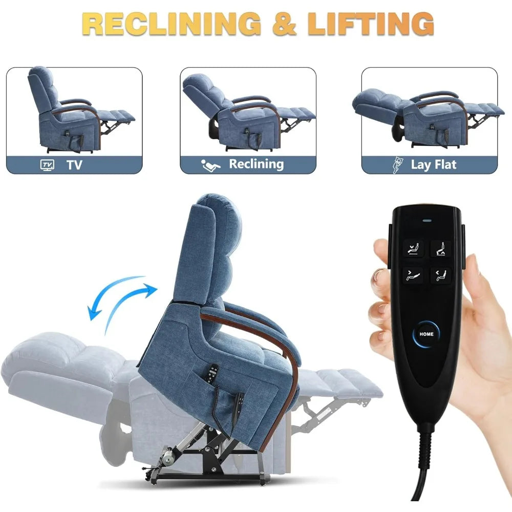 Dual Motor Power Lift Recliner with Massage and Heat, Flat Laying Capability for Elderly Assistance and Standing Support