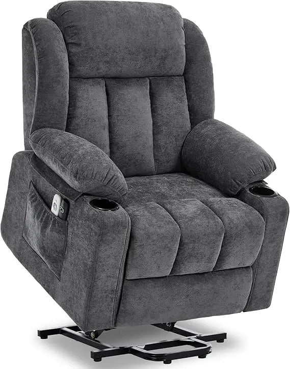 This product is a power lift chair designed for comfort and ease of use. It features an electric lift function that assists the elderly in standing up by reducing the strain on their backs and knees. The chair can recline to 160 degrees for optimal relaxation and includes side pockets, cup holders, and USB and Type-C charging ports for added convenience. The chair offers a customized massage experience with eight massage points, adjustable intensity, and various mode settings. It targets sore muscles and provides lumbar heat therapy for additional comfort, with independent control for personalized settings. Made with upgraded velvet linen fabric, the chair is durable, breathable, and soft, ensuring a comfortable seating experience that is also easy to clean. High-density sponge filling prevents the chair from collapsing even with long-term use, maintaining its comfort over time. The chair's design is supportive, with a thickened steel base structure capable of withstanding up to 350 pounds. It features an overstuffed design that provides excellent head and back support, making it suitable for various settings such as living rooms and bedrooms. The chair combines classic contemporary style with practical functionality. Assembly is straightforward, with the chair arriving in a single box and requiring no tools for assembly, which can be completed in about 15 minutes. A one-year warranty is provided, and support is available for any assembly issues that may arise.