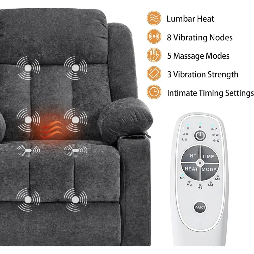 Elderly-Friendly Power Lift Recliner with Massage and Heat, Comfortable Recliner Chairs for Adults, Enhanced Fabric Reclining So