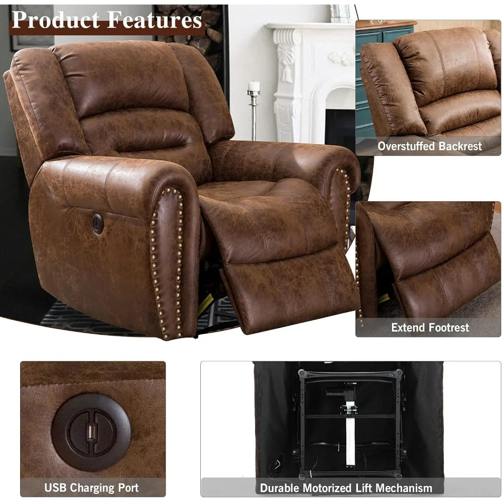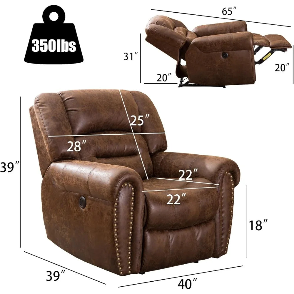 Electric Recliner Chair with Breathable Bonded Leather, Single Sofa for Home Theater Seating with USB Port, Nut Brown