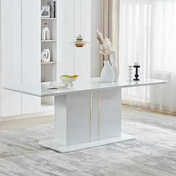 This dining table is a contemporary and elegant addition to your home, suitable for both everyday meals and special occasions. Its modern design makes it a perfect focal point in your dining room, blending seamlessly with your decor and enhancing your dining experience. Crafted from high-quality materials, this wooden table is built to last, offering both durability and sturdiness. It's designed to handle the weight of various dishes and drinks, ensuring it can withstand the demands of daily use. The extendable design allows this table to comfortably seat up to eight people, making it perfect for family gatherings or hosting friends. It provides ample space, ensuring that even with a full table, everyone can enjoy a comfortable dining experience. This high-gloss white dining table is backed by our commitment to customer satisfaction. If you receive a damaged table during transportation, please contact us immediately, and we will resolve the issue within 24 hours. Our customer service team is dedicated to addressing any concerns you may have regarding product quality, packaging, installation, or any other queries. We promise to respond to your questions within 24 hours and provide you with thoughtful service and comprehensive solutions. Don't hesitate to reach out to us directly for any assistance you may need.
