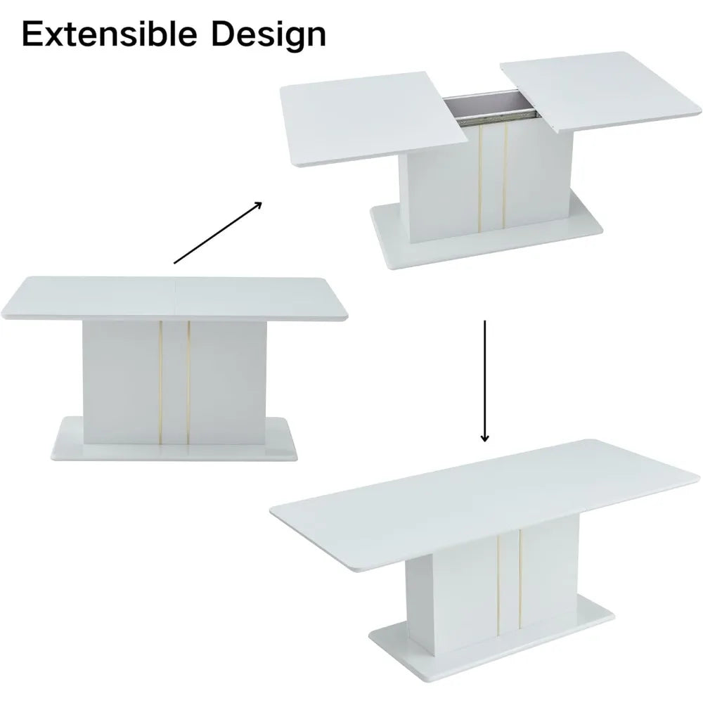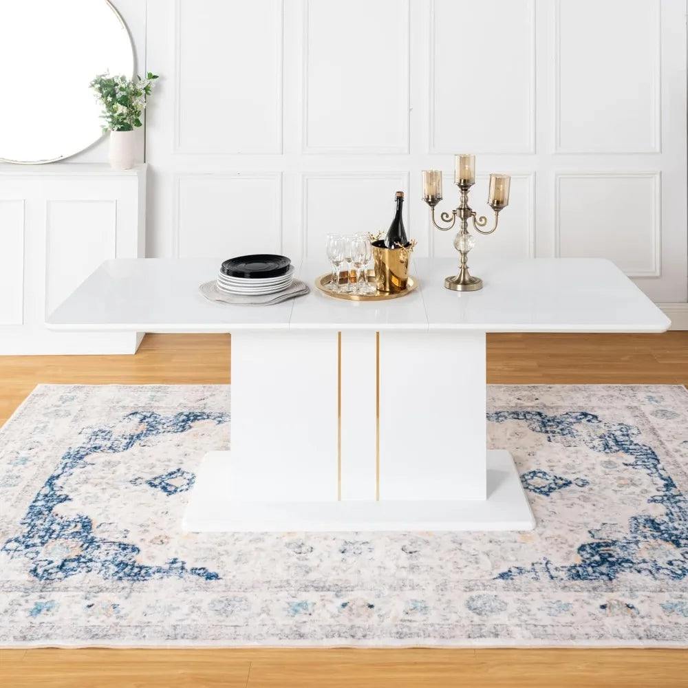 Elegant Expandable Glossy Wooden Dining Table, 63-80.7, Suitable for Kitchen, Restaurant, Home Office, White