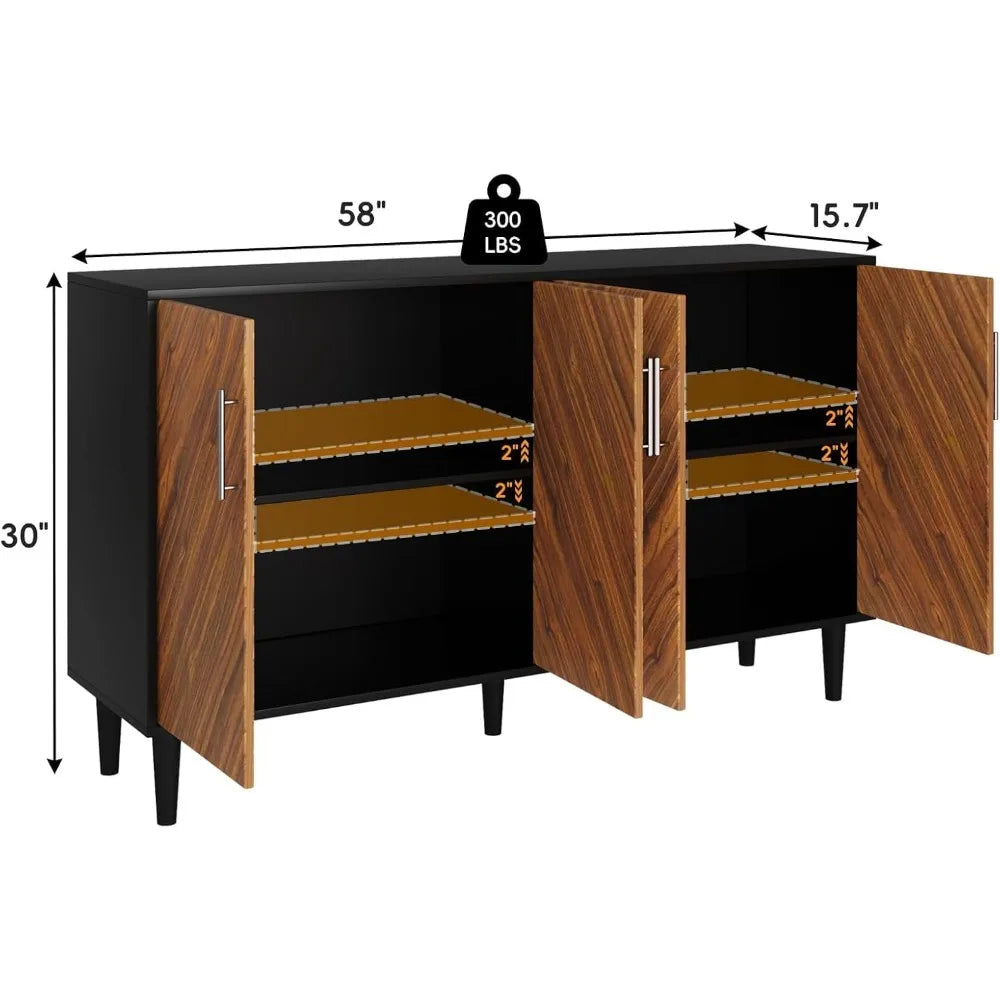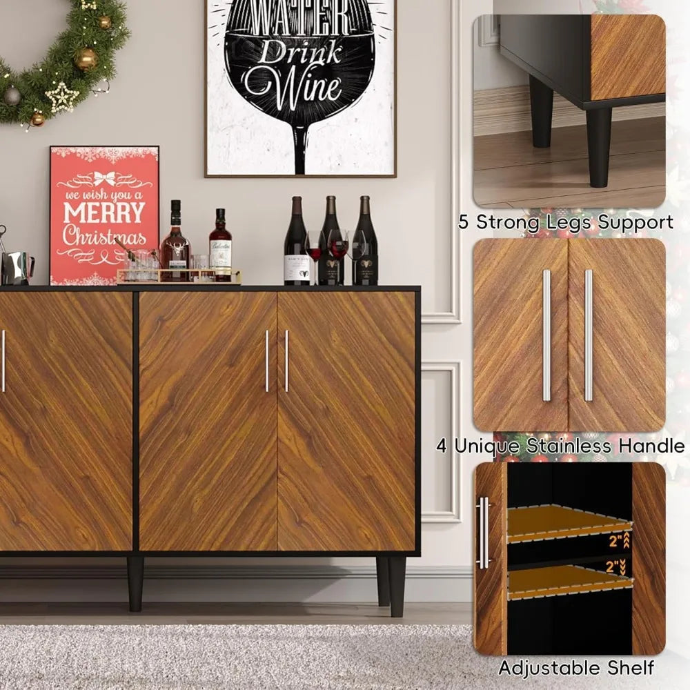 Ever Winner 58 Buffet Cabinet with Storage and Adjustable Shelves, Modern Coffee Bar with 4 Doors for Living Room