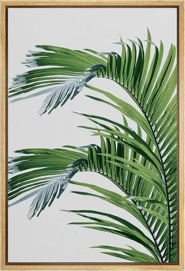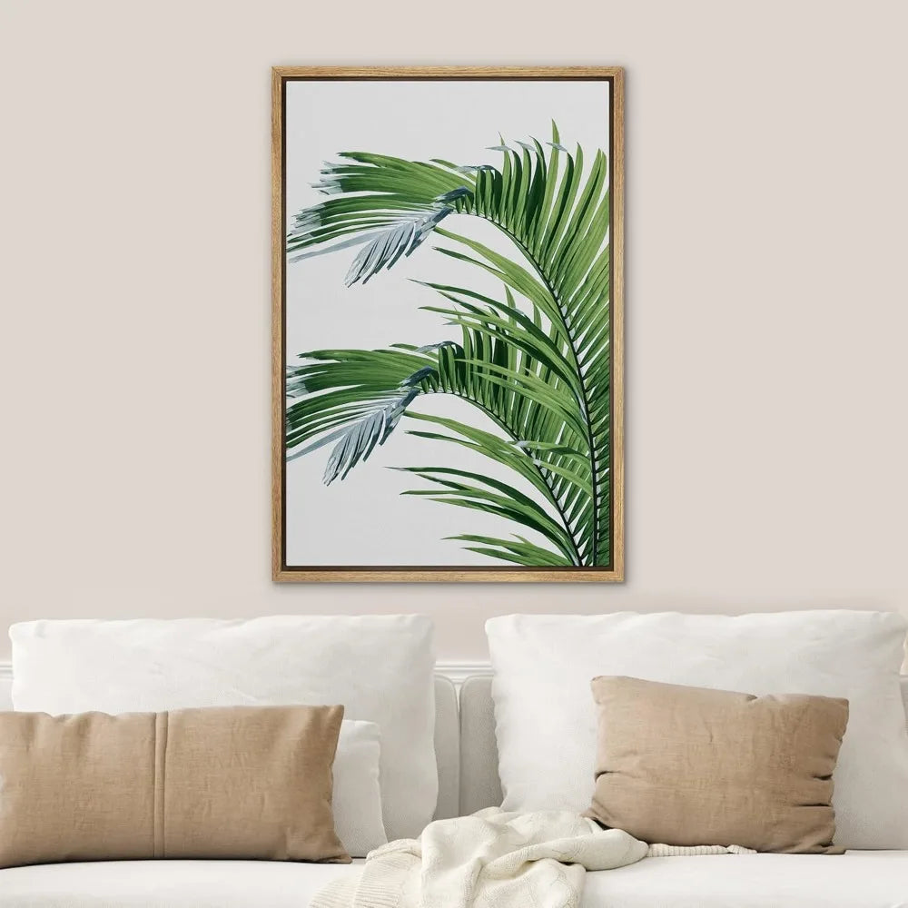 Framed Canvas Wall Art: Lush Green Jungle Palms - Nature Themed Modern Decorative Minimalist Art