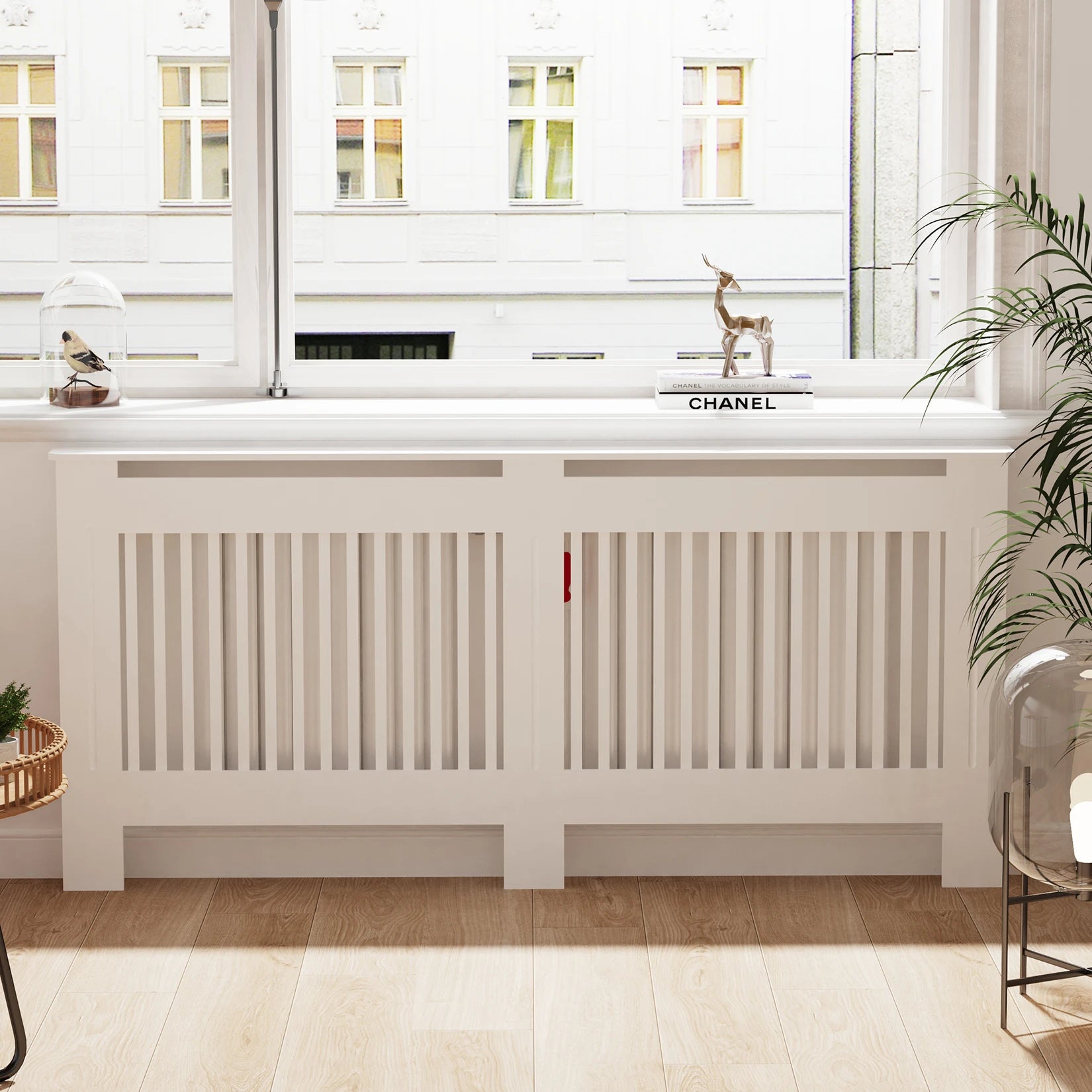 High Radiator Cover Modern Slatted Vertical Radiator Cover MDF Cabinet High Radiators Shelf for Bedroom Living Room Radiators