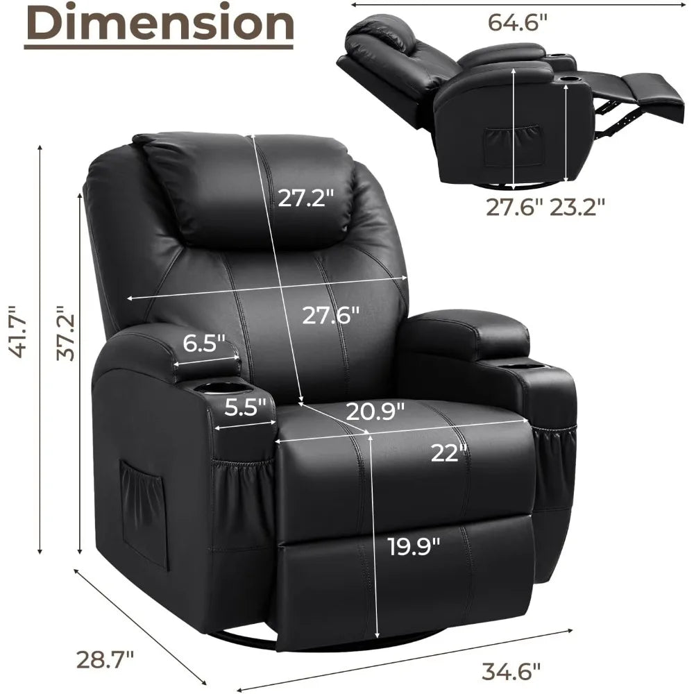 Massage Rocker Recliner Chair for Seniors, Leather 360° Swivel Rocking Sofa with Remote for Living Room