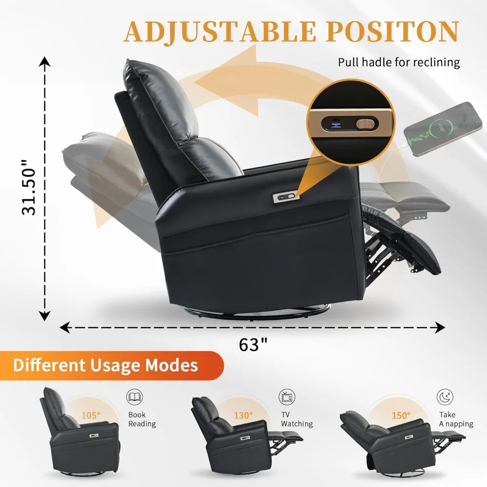 Upholstered 270° Swivel Glider Recliner Chair with USB Charging Ports for Nursery, Ideal for Small Spaces